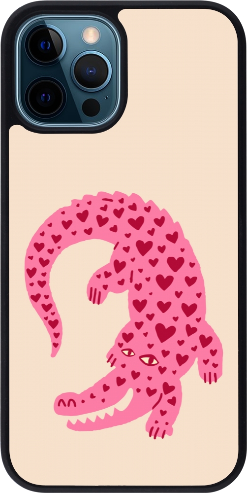 Coque iPhone 12 / 12 Pro - Silicone rigide noir Pink crocodile 2026