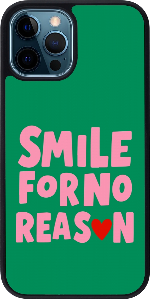 Coque iPhone 12 / 12 Pro - Silicone rigide noir Smile for no reason 2026