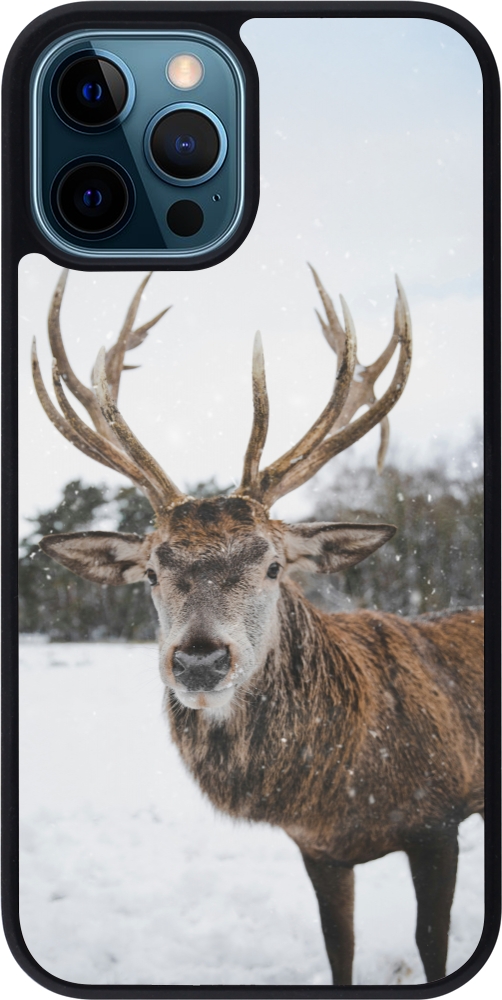 Coque iPhone 12 / 12 Pro - Silicone rigide noir Winter 25 Winter reindeer