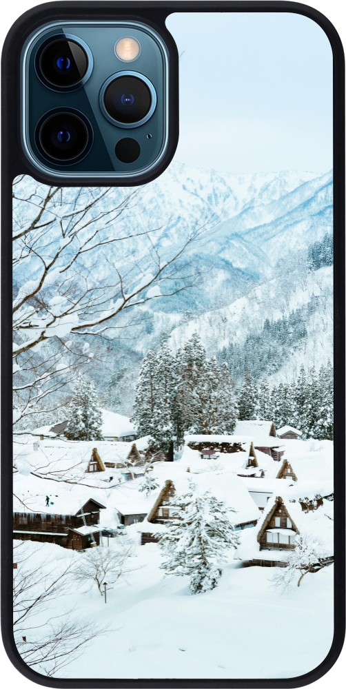 Coque iPhone 12 / 12 Pro - Silicone rigide noir Winter 25 Winter snowy landscape