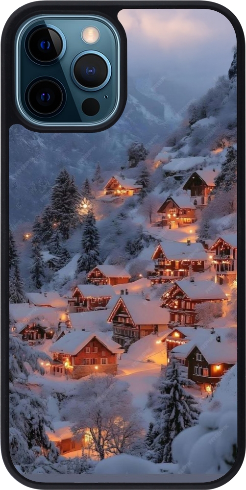 Coque iPhone 12 / 12 Pro - Silicone rigide noir Winter 25 Winter snowy village