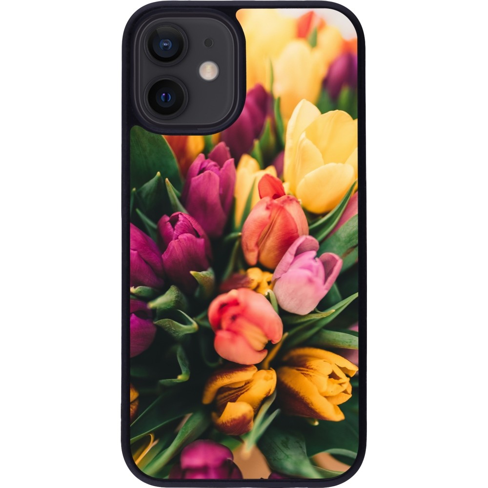 Coque iPhone 12 mini - Silicone rigide noir Bouquet of tulips 2026