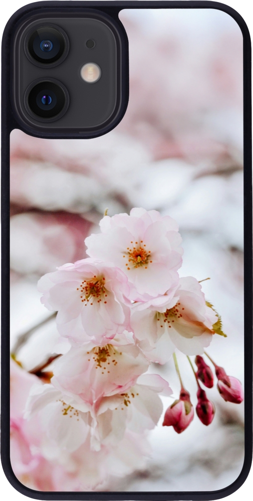 Coque iPhone 12 mini - Silicone rigide noir Cherry tree 2026