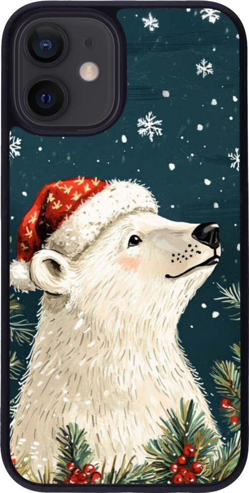 Coque iPhone 12 mini - Silicone rigide noir Christmas 25 Bear