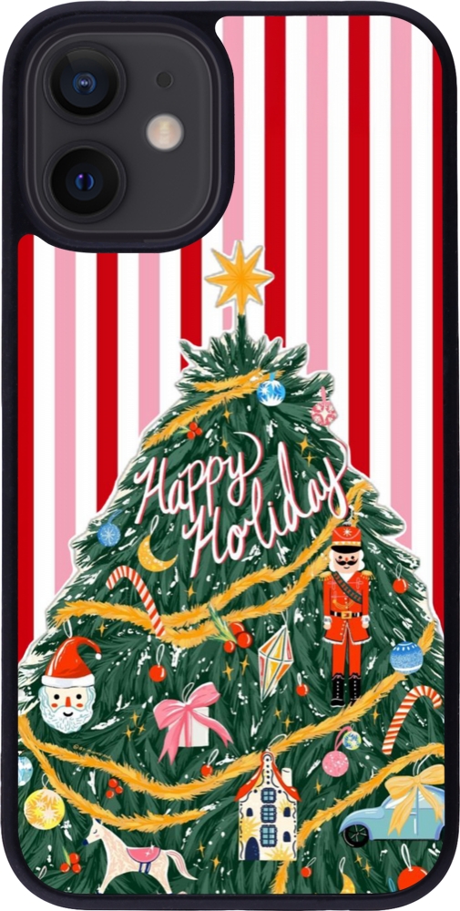 Coque iPhone 12 mini - Silicone rigide noir Christmas 25 Happy Holiday