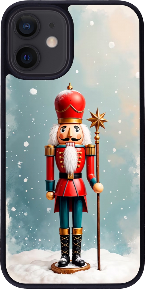 Coque iPhone 12 mini - Silicone rigide noir Christmas 25 Nutcracker Snow