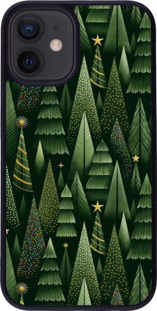 Coque iPhone 12 mini - Silicone rigide noir Christmas 25 Pattern Xmas Tree