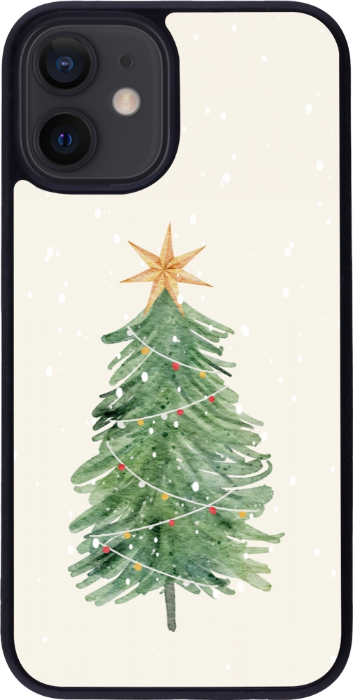 Coque iPhone 12 mini - Silicone rigide noir Christmas 25 Sketch Tree