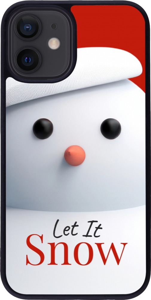Coque iPhone 12 mini - Silicone rigide noir Christmas 25 Xmas Snowman