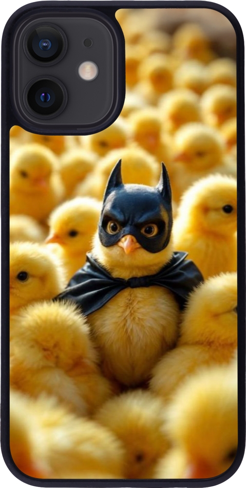 Coque iPhone 12 mini - Silicone rigide noir Easter 2026 Chicken Batman