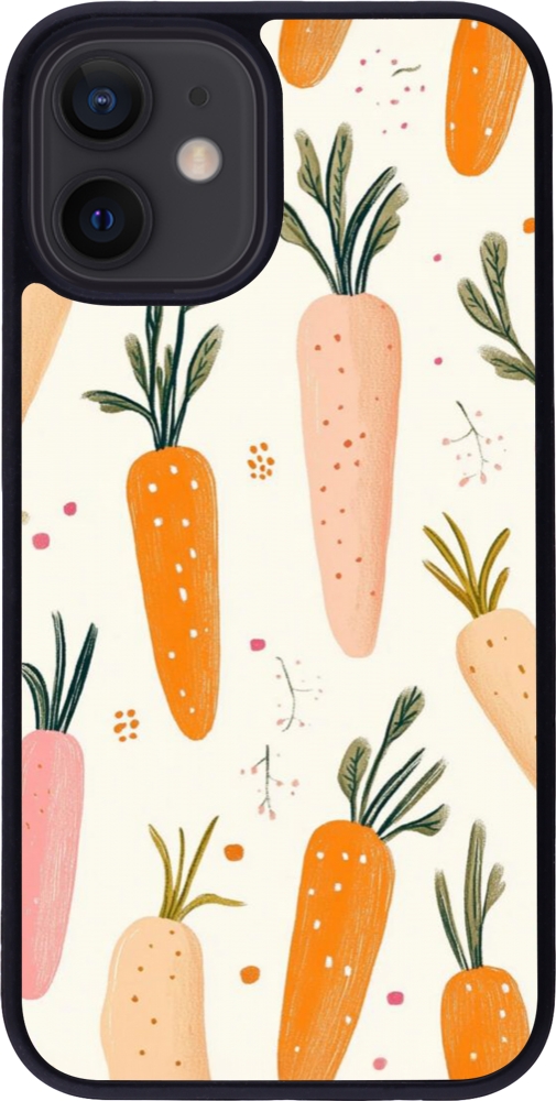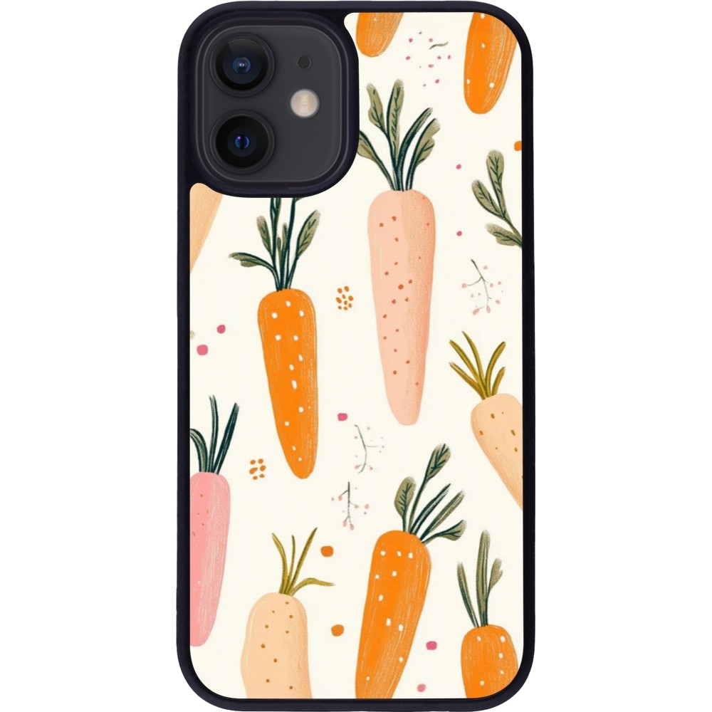 Coque iPhone 12 mini - Silicone rigide noir Easter 2026 Illustration carrots