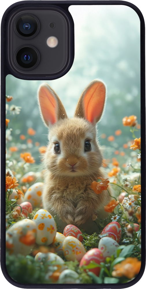 Coque iPhone 12 mini - Silicone rigide noir Easter 2026 Rabbit in the garden