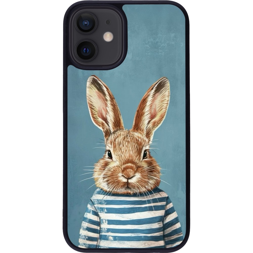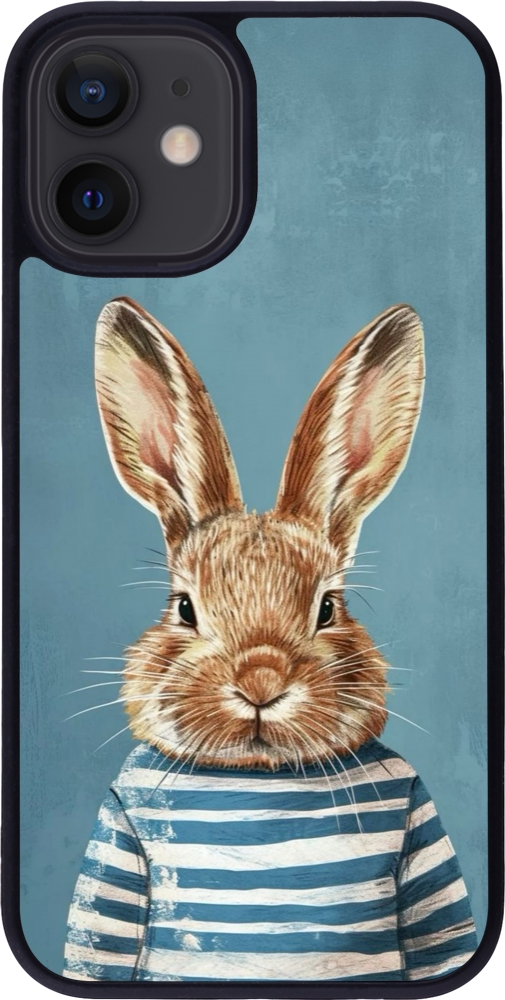 Coque iPhone 12 mini - Silicone rigide noir Easter 2026 Rabbit navy
