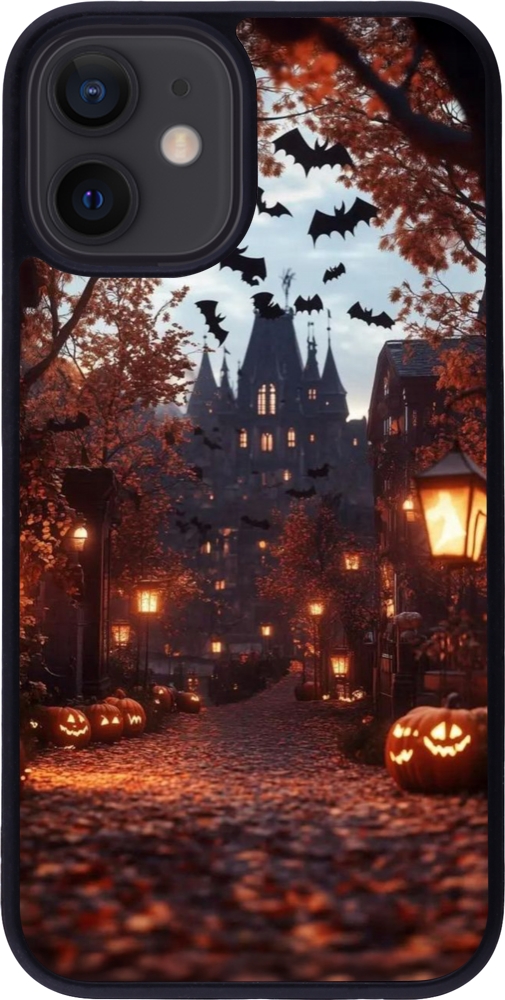 Coque iPhone 12 mini - Silicone rigide noir Halloween 2025 Haunted house