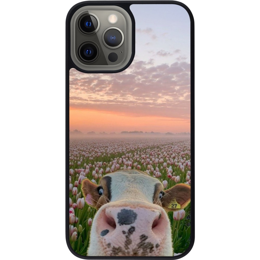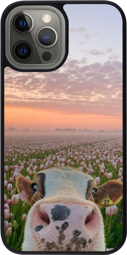 Coque iPhone 12 Pro Max - Silicone rigide noir Cow with tulips 2026