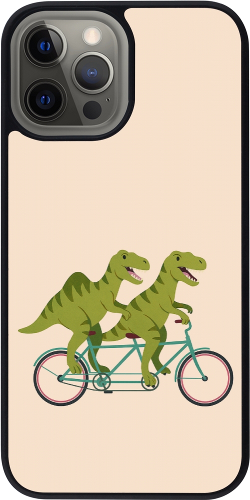 Coque iPhone 12 Pro Max - Silicone rigide noir Dinosaurs on bikes 2026