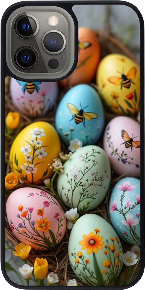 Coque iPhone 12 Pro Max - Silicone rigide noir Easter 2026 Eggs with bees