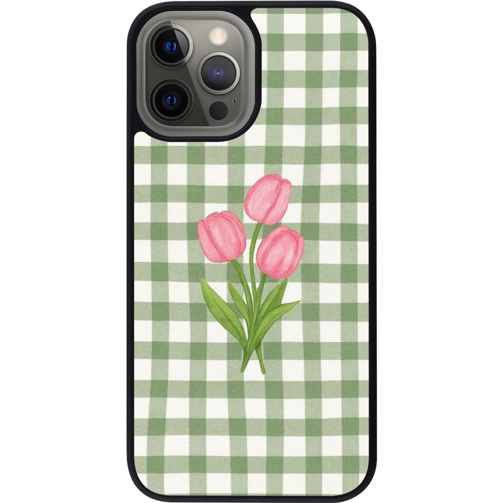 Coque iPhone 12 Pro Max - Silicone rigide noir Green vichy tulips 2026