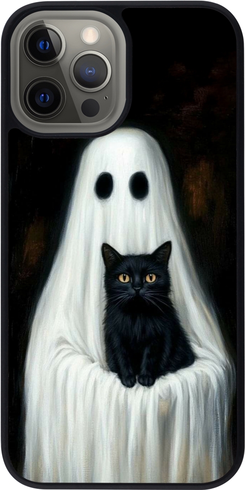 Coque iPhone 12 Pro Max - Silicone rigide noir Halloween 2025 Ghost with black cat