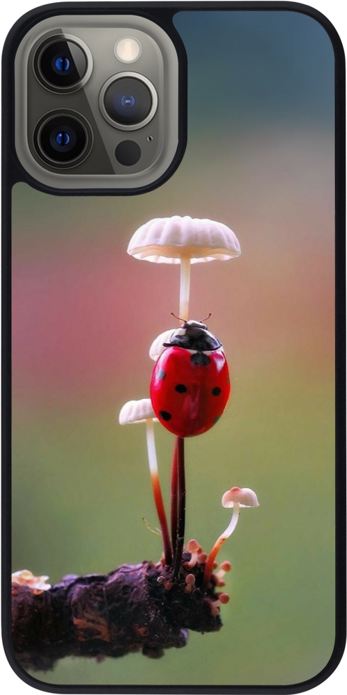 Coque iPhone 12 Pro Max - Silicone rigide noir Ladybird on a mushroom 2026