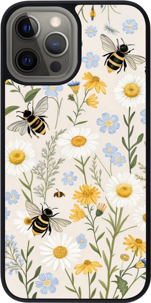 Coque iPhone 12 Pro Max - Silicone rigide noir Pattern bees 2026