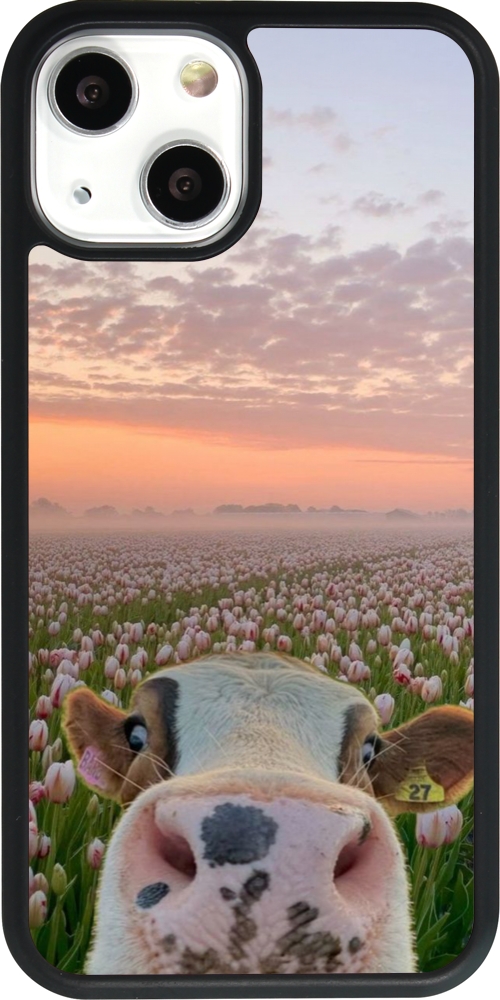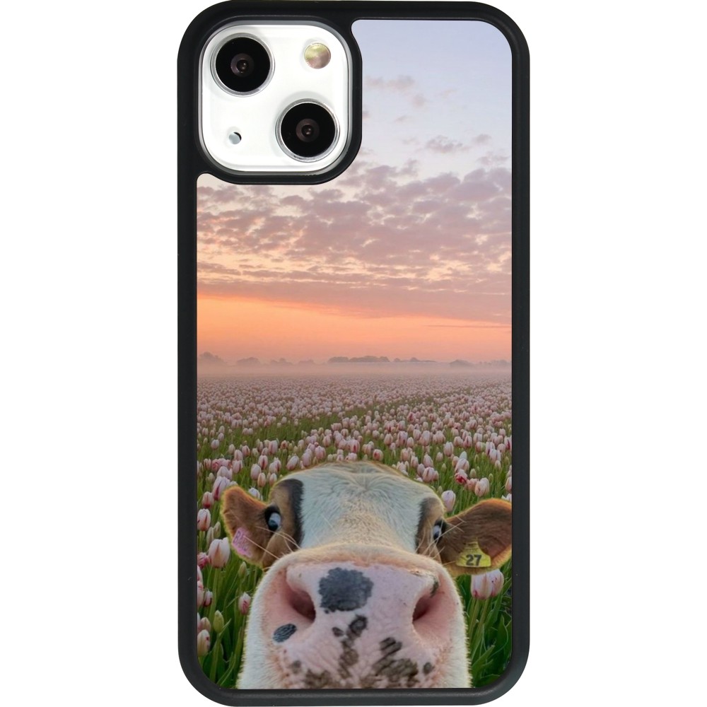Coque iPhone 13 mini - Silicone rigide noir Cow with tulips Spring 2026