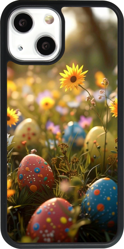 Coque iPhone 13 mini - Silicone rigide noir Easter 2026 Decorated eggs