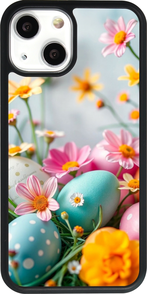 Coque iPhone 13 mini - Silicone rigide noir Easter 2026 Eggs with flowers