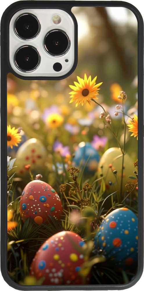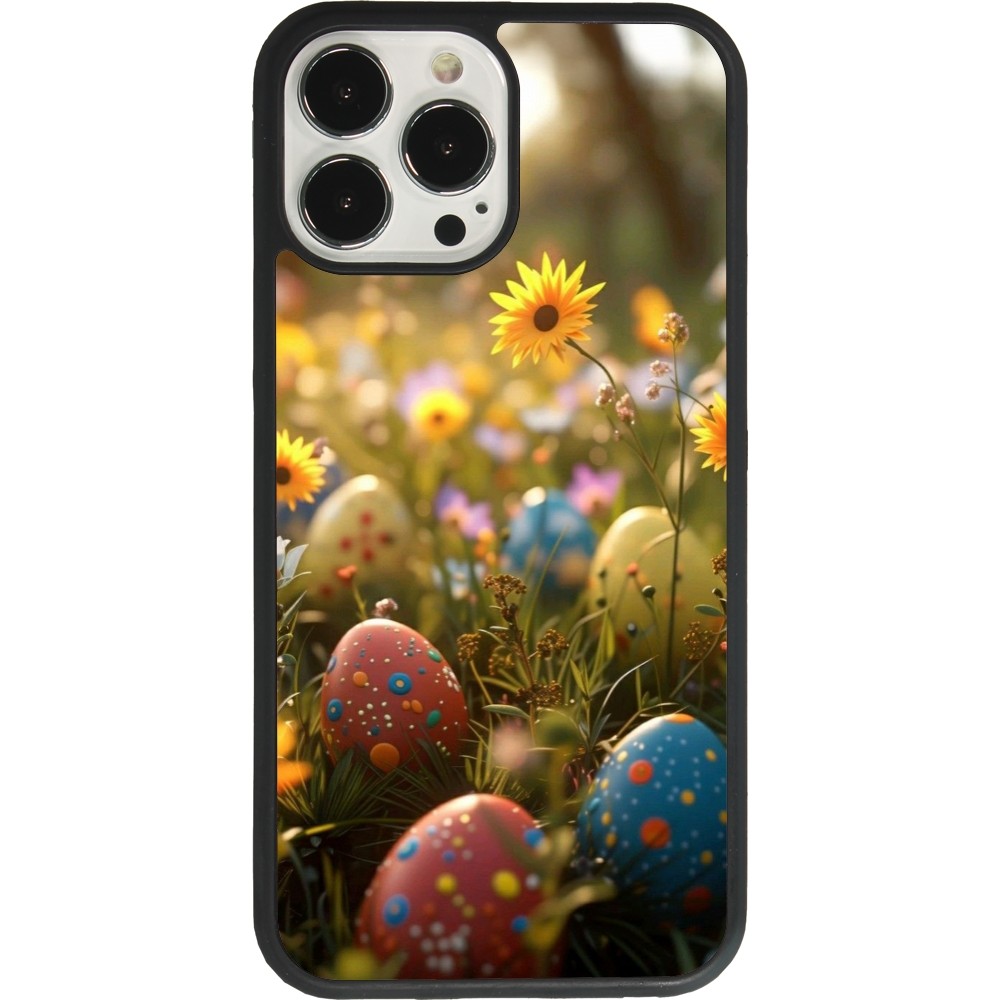 Coque iPhone 13 Pro Max - Silicone rigide noir Easter 2026 Decorated eggs