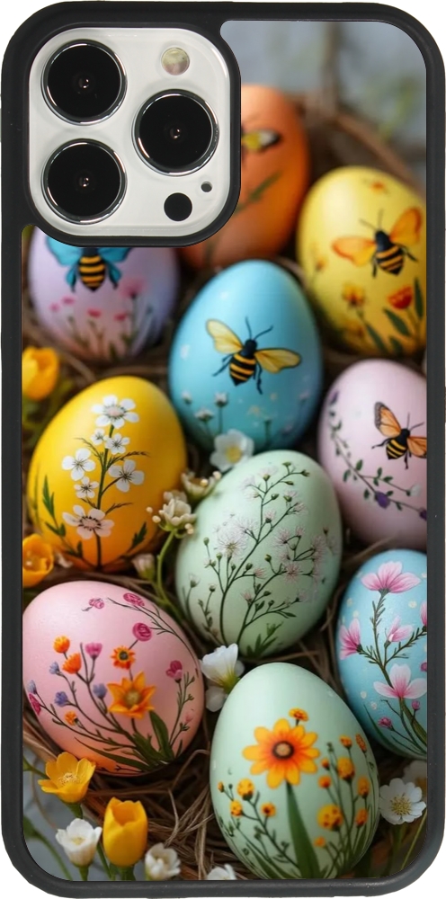 Coque iPhone 13 Pro Max - Silicone rigide noir Easter 2026 Eggs with bees