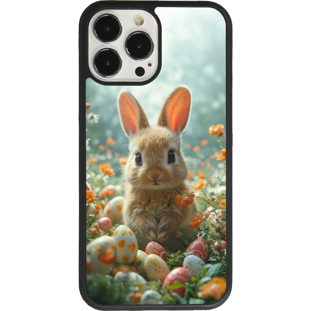 Coque iPhone 13 Pro Max - Silicone rigide noir Easter 2026 Rabbit in the garden