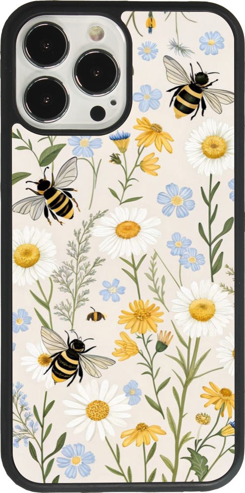 Coque iPhone 13 Pro Max - Silicone rigide noir Pattern bees 2026