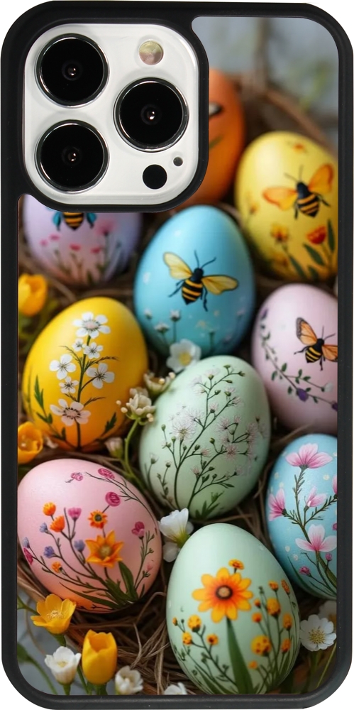 Coque iPhone 13 Pro - Silicone rigide noir Easter 2026 Eggs with bees