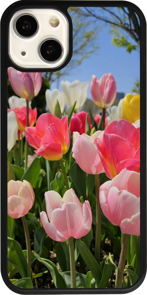 Coque iPhone 13 - Silicone rigide noir Tulips Spring 2026