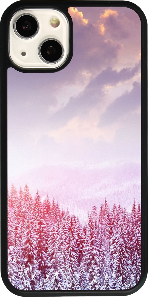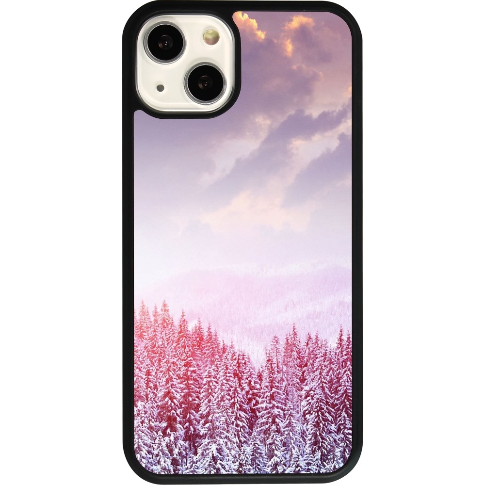 Coque iPhone 13 - Silicone rigide noir Winter 22 Pink Forest