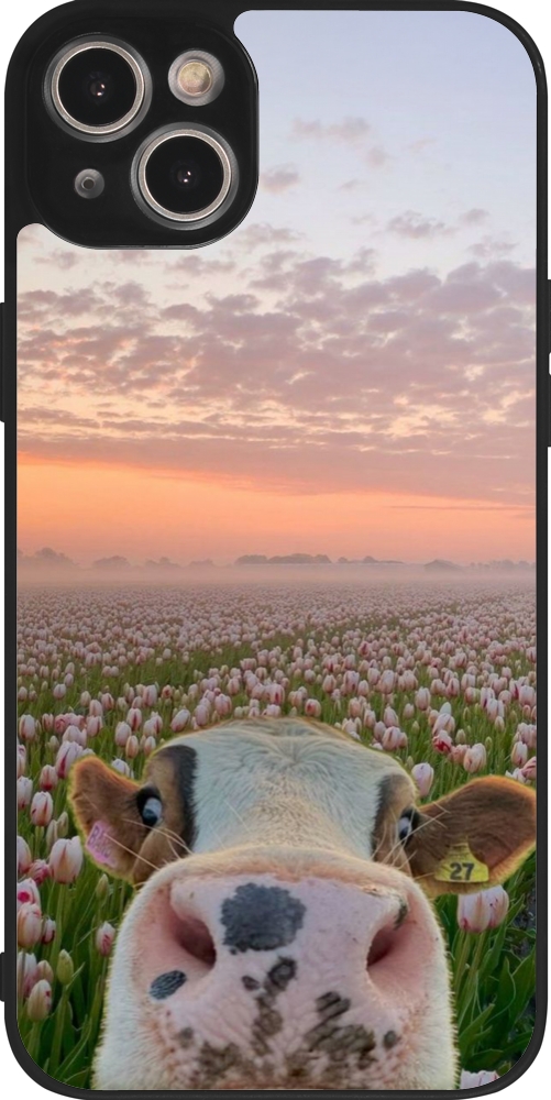 Coque iPhone 14 Plus - Silicone rigide noir Cow with tulips 2026