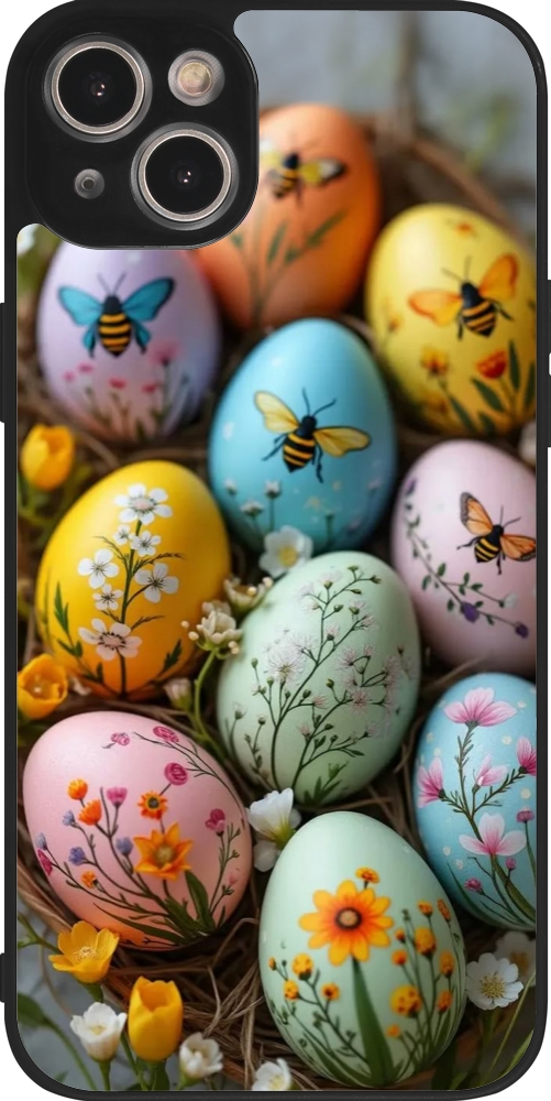 Coque iPhone 14 Plus - Silicone rigide noir Easter 2026 Eggs with bees