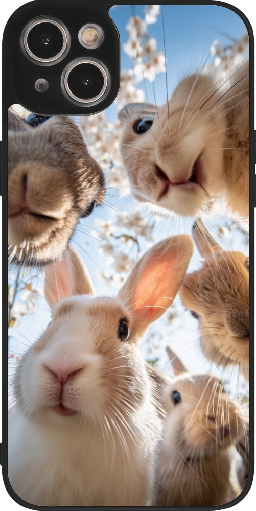 Coque iPhone 14 Plus - Silicone rigide noir Easter 2026 Rabbits