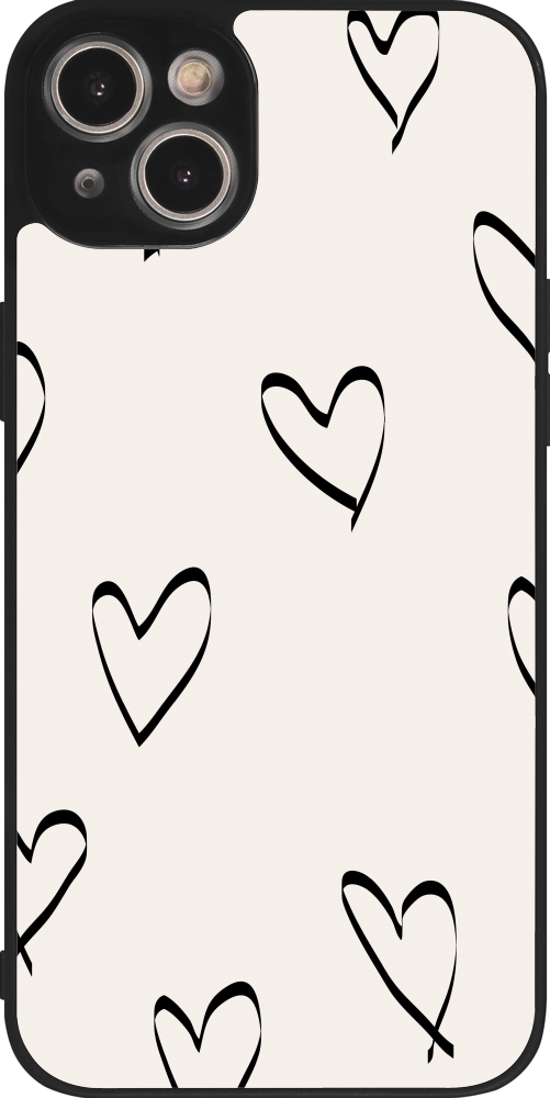 Coque iPhone 14 Plus - Silicone rigide noir Valentine 2023 minimalist hearts