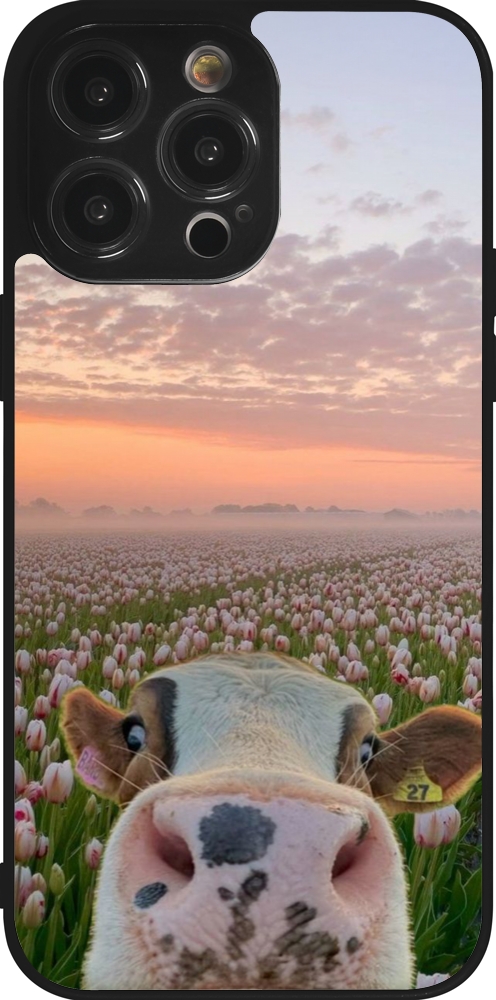 Coque iPhone 14 Pro Max - Silicone rigide noir Cow with tulips Spring 2026