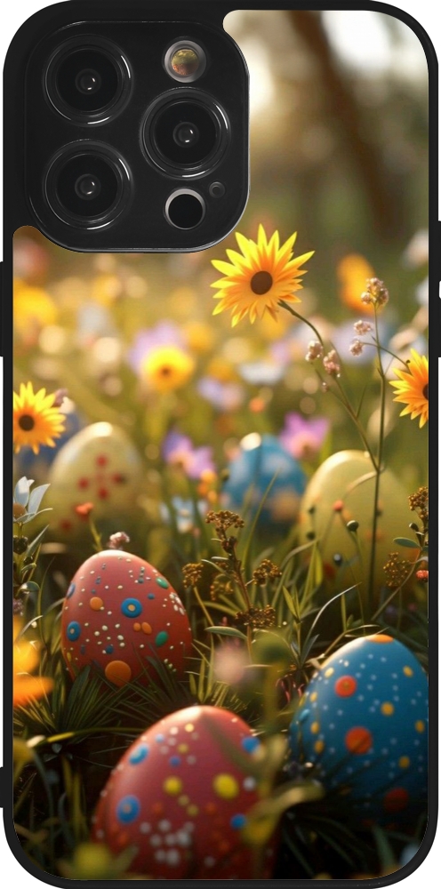 Coque iPhone 14 Pro Max - Silicone rigide noir Easter 2026 Decorated eggs