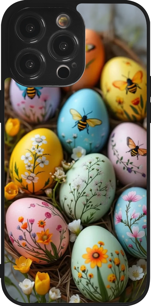 Coque iPhone 14 Pro Max - Silicone rigide noir Easter 2026 Eggs with bees