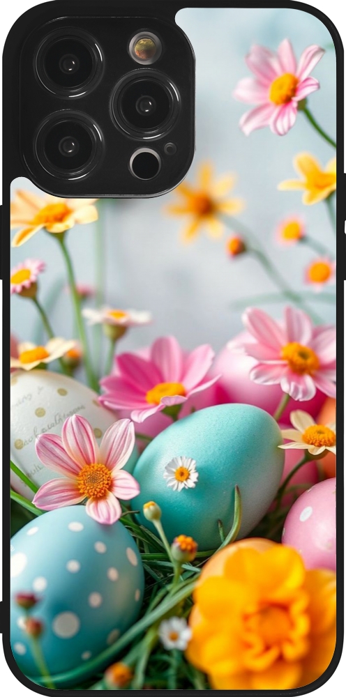 Coque iPhone 14 Pro Max - Silicone rigide noir Easter 2026 Eggs with flowers