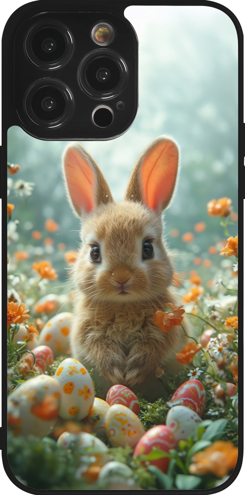 Coque iPhone 14 Pro Max - Silicone rigide noir Easter 2026 Rabbit in the garden