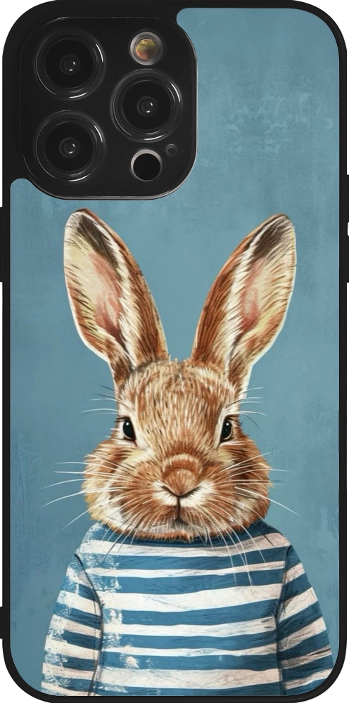 Coque iPhone 14 Pro Max - Silicone rigide noir Easter 2026 Rabbit navy