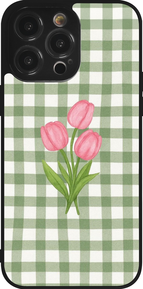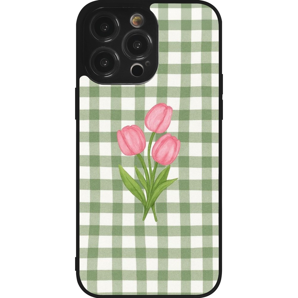Coque iPhone 14 Pro Max - Silicone rigide noir Green vichy tulips Spring 2026