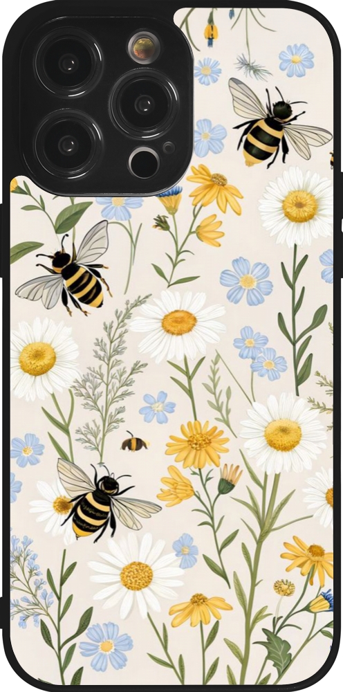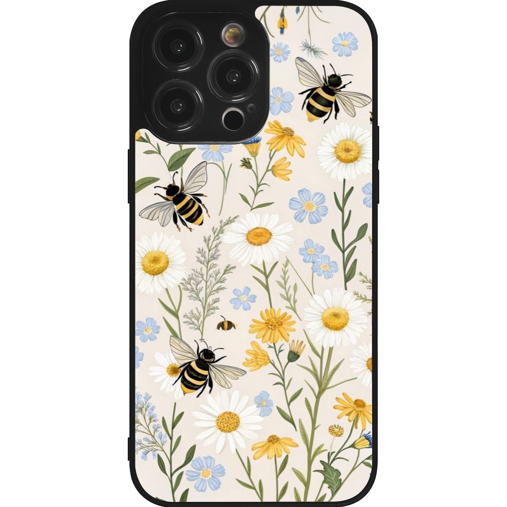 Coque iPhone 14 Pro Max - Silicone rigide noir Pattern bees Spring 2026