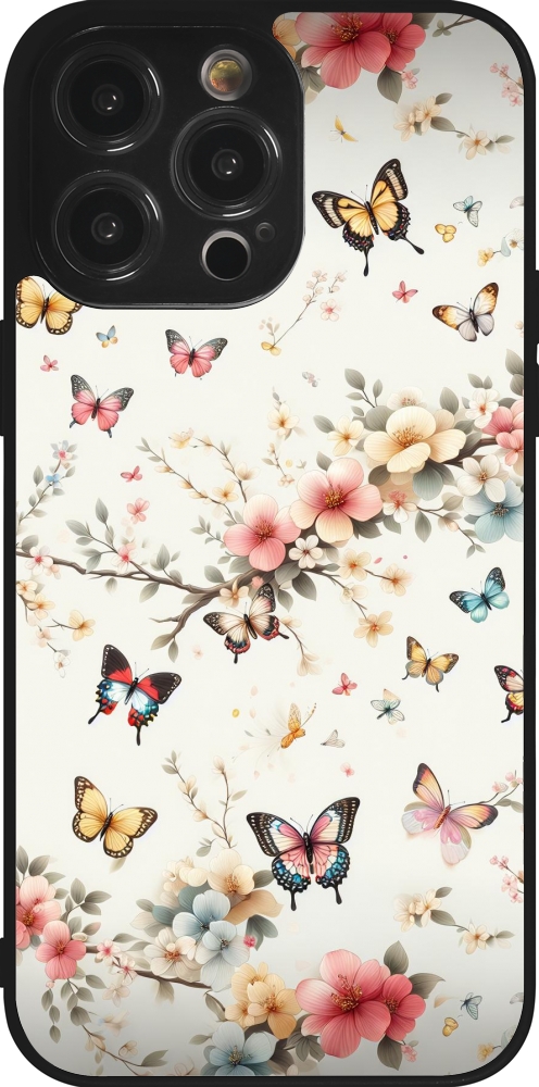Coque iPhone 14 Pro Max - Silicone rigide noir Spring 25 Papillons Légers