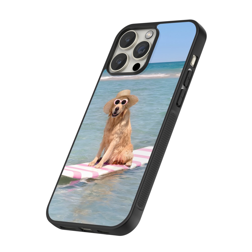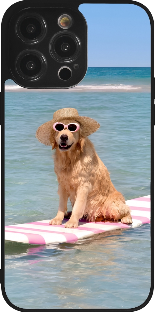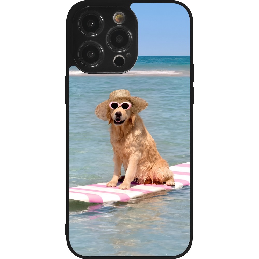 Coque iPhone 14 Pro Max - Silicone rigide noir Summer Dog on Paddle