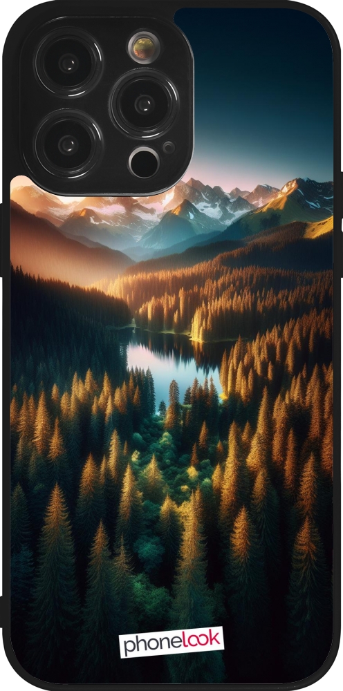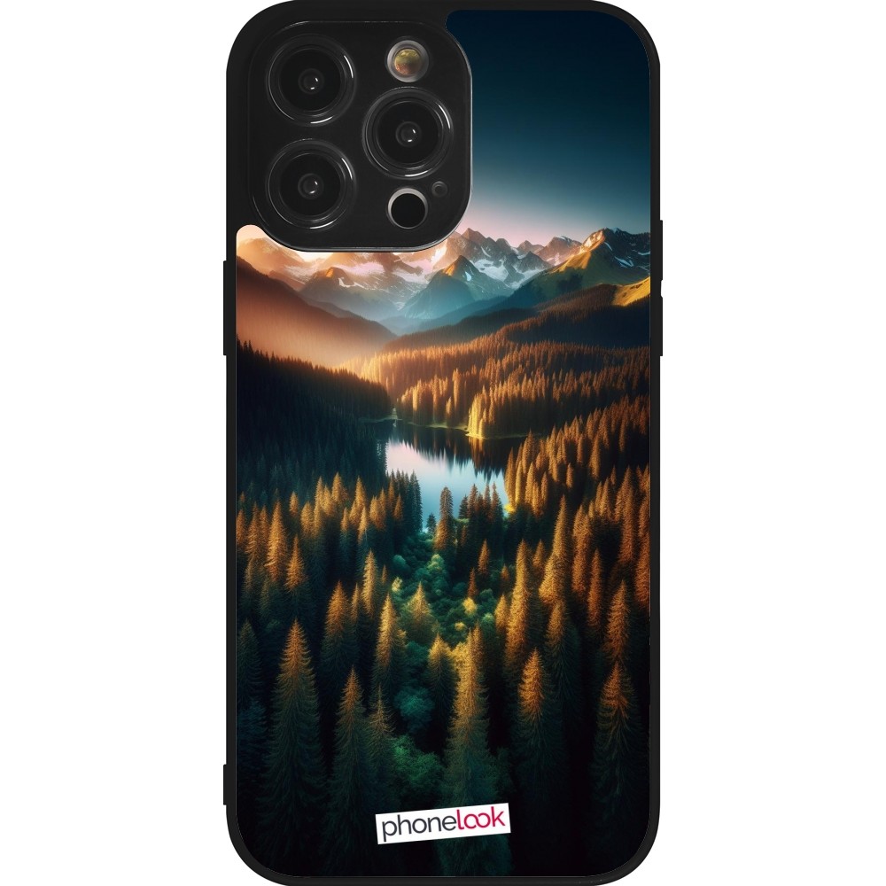 Coque iPhone 14 Pro Max - Silicone rigide noir Sunset Forest Lake